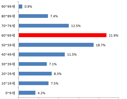 60~69세 8,337명 21.9%