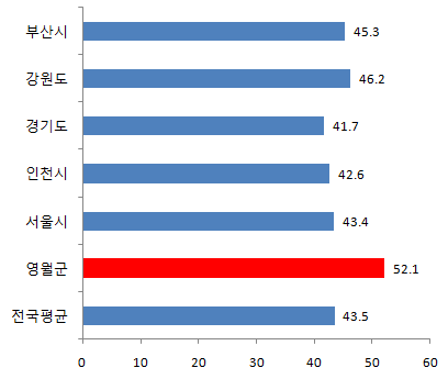 영월군의 남자 평균연령은 50.4세