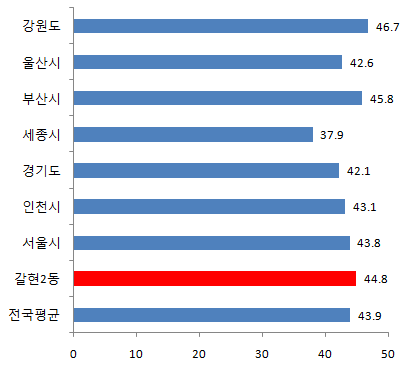 갈현2동의 평균연령은 44.8세입니다.