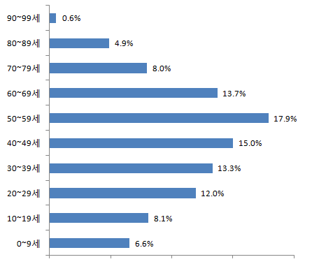 0~9세 1,114명 6.6%