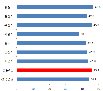 홍은2동 중장년 인구는 10,284명(40∼64) 39.3%