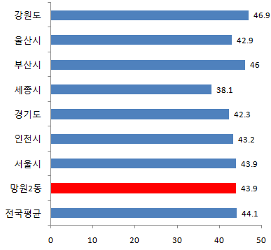 망원2동의 남자 평균연령은 43세