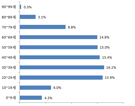 0~9세 1,032명 4.3%