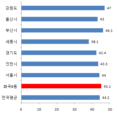 화곡8동의 남자 평균연령은 44세