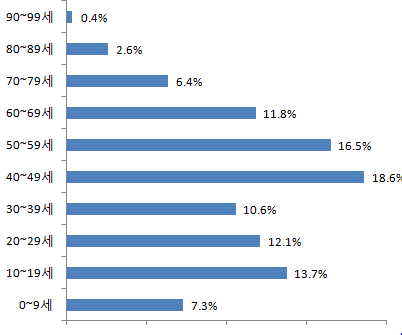 0~9세 2,617명 7.3%