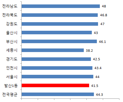 발산1동의 평균연령은 41.5세입니다.